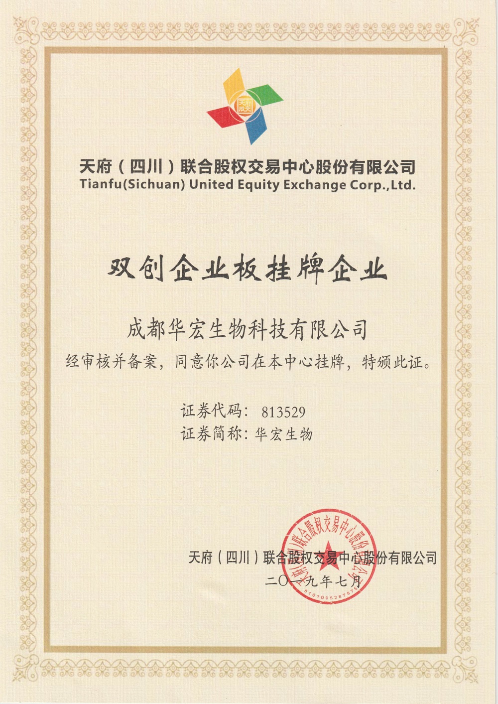 • 雙創(chuàng)企業(yè)版掛牌證書